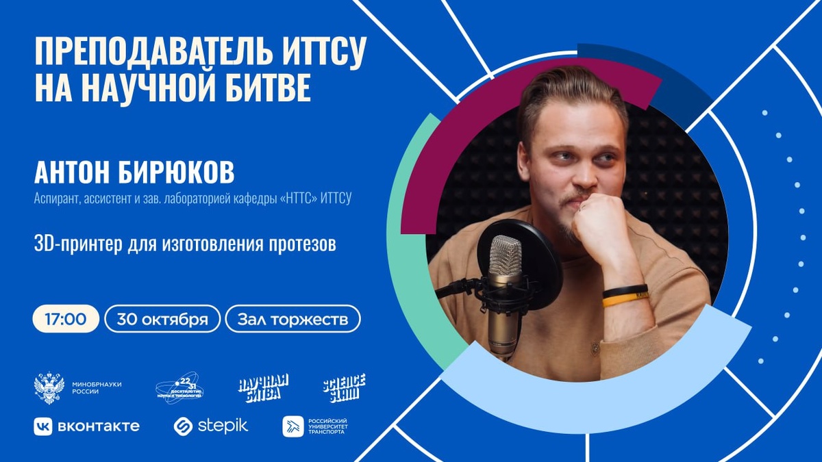 Преподаватель ИТТСУ💙 выступит на Научной битве РУТ ➡️30 октября на сцене Научной битвы РУТ выступит Антон Бирюков — ассистент и заведующий лабораторией кафедры «Наземные транспортно-технологические средства» ИТТСУ, аспирант и автор научно-технического канала MadMek (более 52 тысяч подписчиков). ➡️Тема его выступления — «3D-принтер для изготовления протезов». Антон представит собственные разработки в области 3D-печати, направленные на создание персонализированных протезов и экзоскелетов. Его цель — сделать технологии реабилитации более доступными и точными. Мероприятие состоится 30 октября в 17:00 в зале торжеств (ауд. 1201). ➡️Регистрация для зрителей по ссылке Будь в курсе событий РУТ
