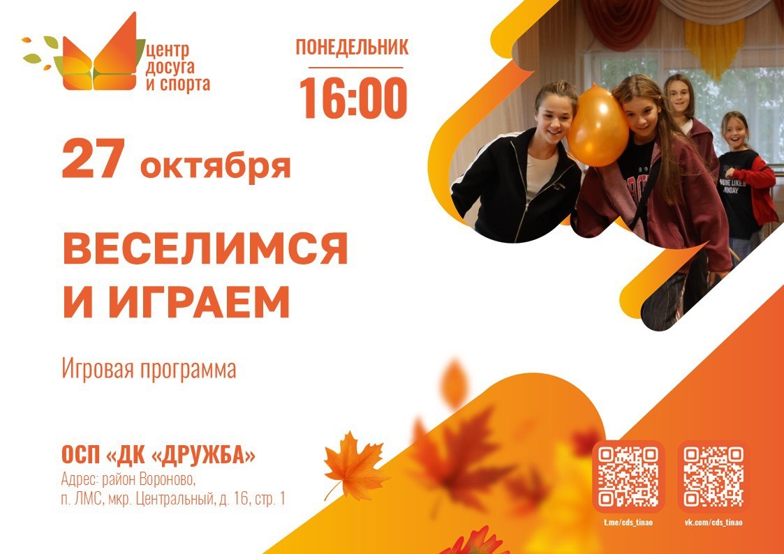 ОСП «ДК «Дружба» приглашает всех детей на увлекательную игровую программу «Веселимся и играем»! ✨