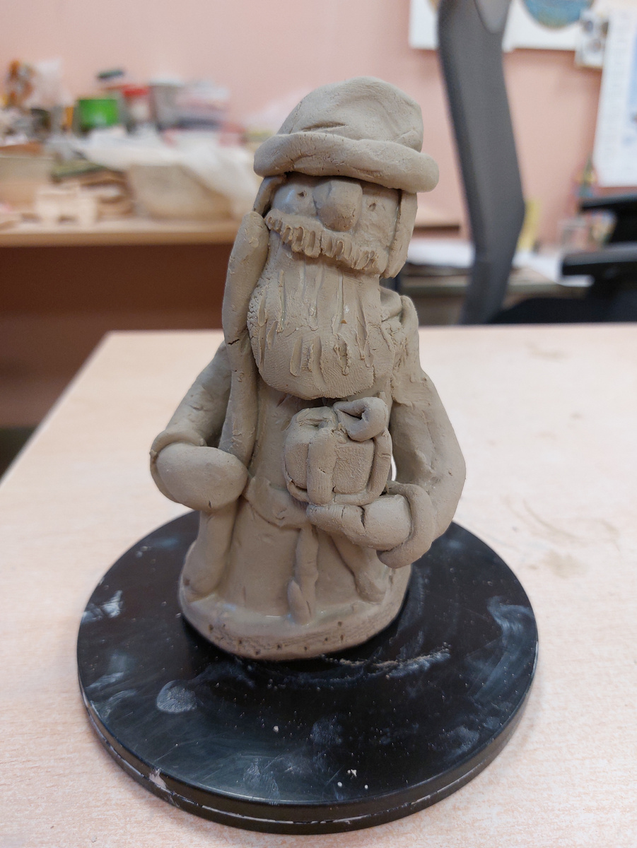 Из хорошего: во вторник в ЦРИ Миша слепил Деда Мороза из глины.