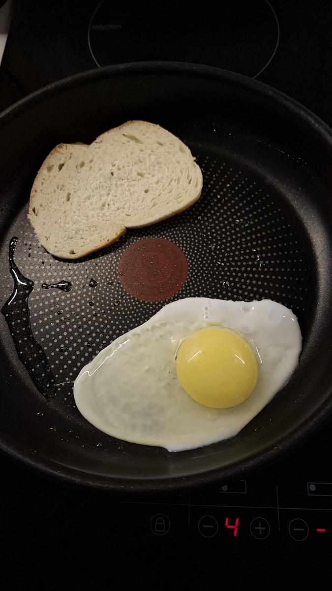 Как же вчера чудесно отметили день рождения подруги! И даже ничего не болит, ну, кроме совести, она весь вечер мешала наслаждаться едой. Сегодня утром еще её немного помучаем и приготовим один из моих любимейших завтраков. Берем сковороду и сразу туда то яйцо, которому надо высушить желток. И хлеб-для любителя сухого желтка. Я свой хлеб в тостер сунула-там нет масла. Совесть, чтоб её... Хлеб поджарили, сразу за ним колбаса. Вредная, как я, и вкусная. Если бы экран мог передать вам ароматы... Но придется вам или самим пожарить, или просто представить. Румяную колбаску со сковороды долой! Время яичка Стараемся, следим, чтоб ничего не сгорело и не прихватилось. Когда миссия по приготовлению завтрака успешно завершена, можно уже наконец налить чаю и приступить к поглощению Доброе утро 🌄 И пусть у вас всё получится! Мой телеграм-канал с завтраками
