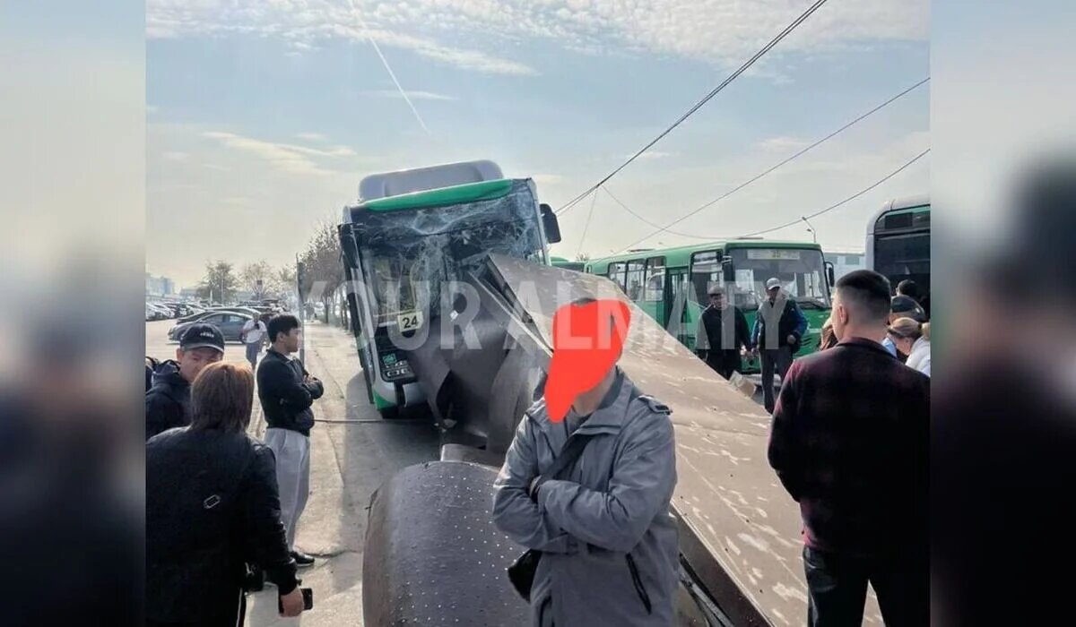 В Алматы автобус врезался в остановку: стало известно о состоянии женщины и ребенка