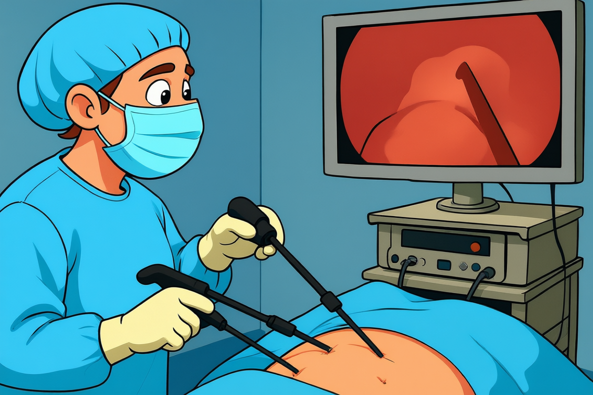 Представьте, что хирург работает не с большим разрезом, а с несколькими тонкими проколами. Через них вводятся «манипуляторы» — длинные трубки с мини-камерой и инструментами на концах. Врач управляет ими, глядя на экран монитора.
