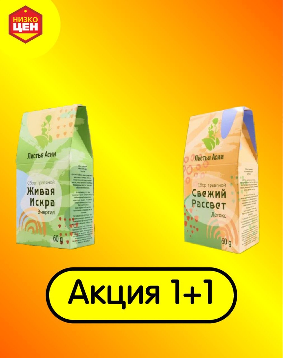 Если ваши планы на выходные — успокоиться и расслабиться и, в то же время, набраться сил и энергии, то вам в НИЗКОЦЕН! У нас акция на травяные сборы «Листья Асии». Теперь бодрость, релакс, спокойствие и энергия доступны в двойном объёме!