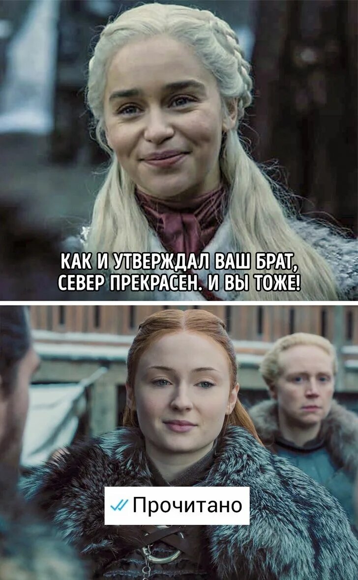 Санса я думал что дура, оказалась что всего лишь на половину. Мизинец чёрт, всегда это знал. Движняк мощный. Арья тоже красава, наконец-то более менее соображать начала. Не зря