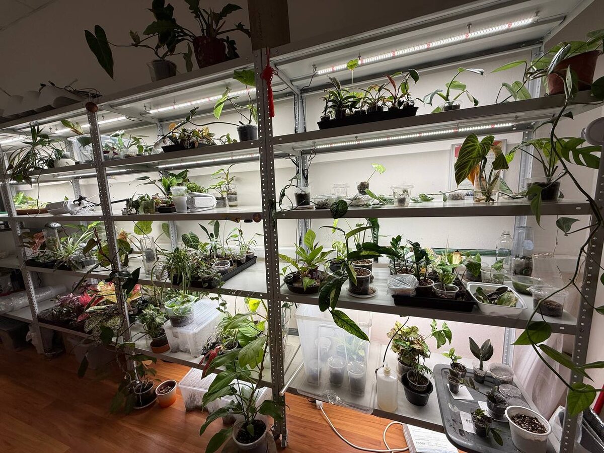🌿 Новости нашего зеленого царства! На этой неделе у Цветочной Клептомании произошло большое событие: мы переоборудовали наше пространство специально для любимых растений! Теперь у нас целых четыре новых стеллажа, каждый из которых в ближайшее время наполнится удивительными растениями прямо из Таиланда. Про стеллажи: - металлические; - высота 200 см, длина 120 см, глубина 50 см; - высота полок - см чертеж; - допустимая нагрузка на полку 120 кг; - на колесиках (два колеса из четырех со стопором). Если хотите узнать где мы их покупали - смотрите комментарии. Но это еще не всё! Мы позаботились и о профессиональном освещении, ведь наши зеленые друзья заслуживают лучших условий для роста и цветения. Про лампы: - длина ламп 90 см; - светодиоды; - мощность ламп: 14 штук по 25 Вт на одну полку и 2 штуки по 45 Вт. Вы наверняка уже догадались, где мы купили эти лампы. Да, это минифермер. Спасибо большое ребятам-консультантам - помогли сделать проект для наших стеллажей, за что им большой р