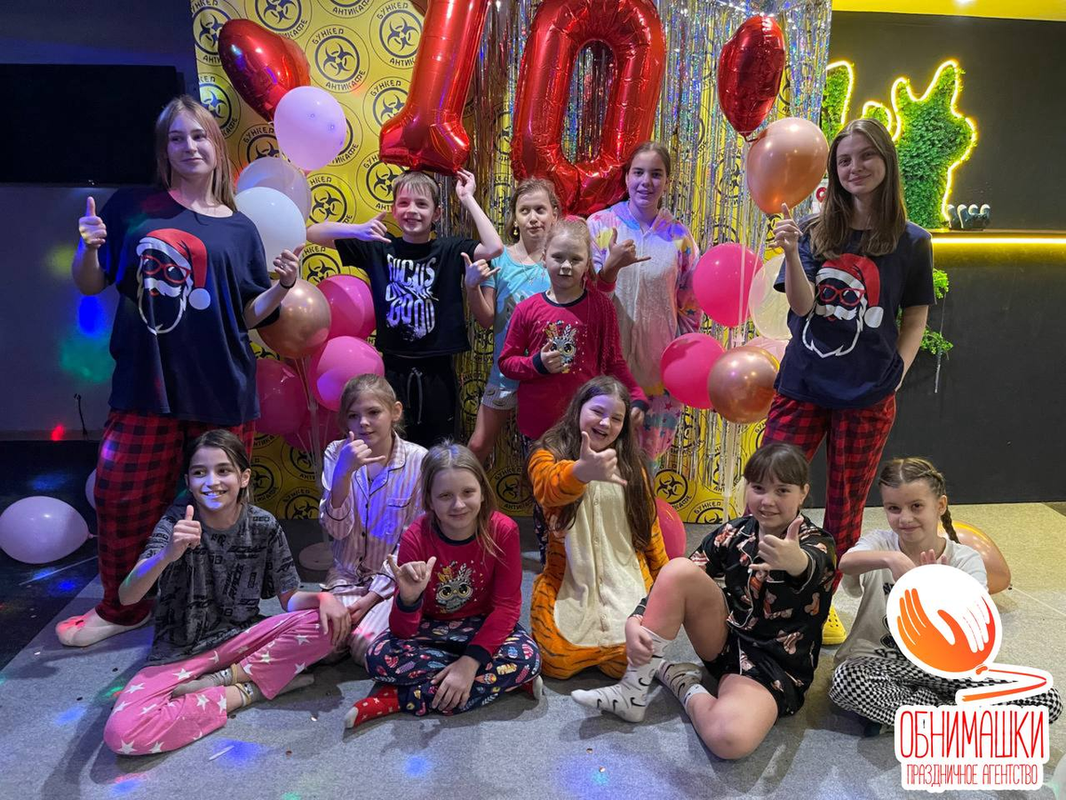 Забудьте об обыденности! Наша пижамная вечеринка — нечто большее, чем просто сбор друзей. Это тщательно продуманное приключение, где уют встречается с азартом, а мечты переплетаются с реальностью. Мы разрушаем стереотипы, предлагая программу, которая одинаково увлекательна как для девочек, так и для мальчиков. Ведь магия дружбы и веселья не знает границ! Наша философия: в «Обнимашках» мы знаем, что самые ценные воспоминания рождаются из искренних эмоций. Поэтому мы создаем атмосферу, где каждый ребенок чувствует себя свободно, может быть самим собой и делиться радостью с окружающими. Мы не просто проводим конкурсы; мы творим истории, которые останутся в сердцах надолго. Дресс-код Основа нашей пижамной феерии — это, конечно же, дресс-код! Мы призываем всех гостей проявить свою фантазию и облачиться в самые креативные и удобные пижамы. Это не просто одежда, это часть волшебного образа, который помогает погрузиться в атмосферу праздника: • Классика с изюминкой: Элегантные шелковые компле