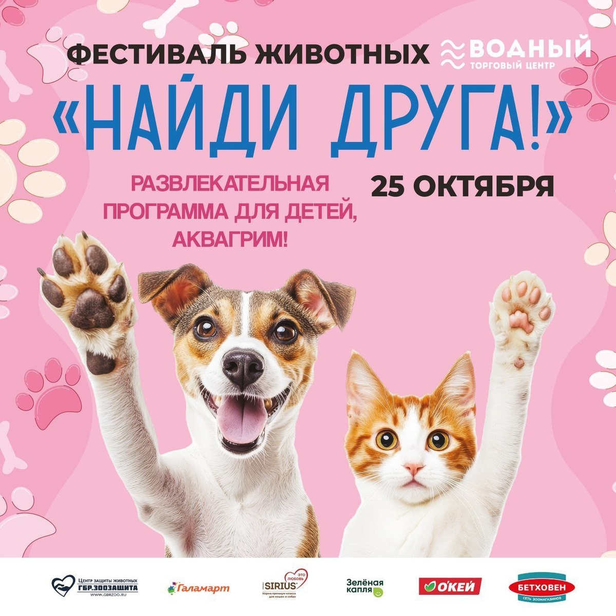 😻Время добрых дел, фестиваль животных из приютов «Найди друга»! 📚Всех участников можно посмотреть в каталоге. Самые красивые, добрые, умные, социализированные кошки и собаки из приютов 🐕🐈 будут ждать своих хозяев на фестивале в субботу, 25 октября. Все животные здоровы, привиты, прошли ветеринарный контроль и готовы ехать домой 💖(не забудьте свой паспорт). Отдаем кошек и собак из приюта бесплатно в добрые и ответственные руки. ✅Вход бесплатный. Хорошее настроение 👌, море позитива и теплые эмоции от общения с добрейшими кошками и собаками гарантированы🤩. Приходите всей семьëй. Для детей👧🧒 будет организована развлекательная программа и аквагрим. 🔷Когда: 25 октября 2025 года (суббота) с 12.00-20.00 ч. Где: ТЦ Водный г. Москва, Головинское ш. д.5 к.1 3 минуты от метро🚇 Водный стадион