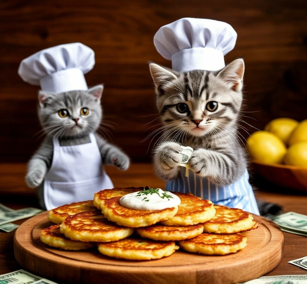 СЧИТАЕМ ДЕНЬГИ В СВОЕЙ ТАРЕЛКЕ — ДОМАШНИЕ КАРТОФЕЛЬНЫЕ ДРАННИКИ С СОУСОМ Мяу, мои экономные пушистики! 😺 Сегодня докажем, что самая простая и дешёвая еда может быть невероятно вкусной! Эти дранники — золотистые, хрустящие снаружи и нежные внутри, они напомнят вам о детстве и бабушкиной кухне. А обойдутся вам всего в 52 рубля за сытную порцию! 🥔💛 Домашние картофельные дранники с соусом 💰 ~52 рубля за порцию(2 порции) Расчет стоимости: 🧮 · Картофель (500 г) — 25 руб. (1 кг ≈ 50 руб) · Лук (1 шт) — 8 руб. · Яйцо (1 шт) — 12 руб. · Мука (2 ст.л.) — 3 руб. · Сметана (100 г) — 25 руб. · Чеснок (2 зубчика) — 5 руб. · Укроп/петрушка — 10 руб. · Масло для жарки — 15 руб. Итого: 103 рубля / 2 порции = 52 рубля за порцию! ИНГРЕДИЕНТЫ: 🧾 · Картофель — 4-5 средних клубней · Лук — 1 головка · Яйцо — 1 шт · Мука — 2 ст.л. · Сметана — 100 г · Чеснок — 2 зубчика · Зелень, соль, перец · Растительное масло ПОШАГОВЫЙ РЕЦЕПТ: 👩🍳 1. Картофельная основа: Картофель очистите и натрите на мелко
