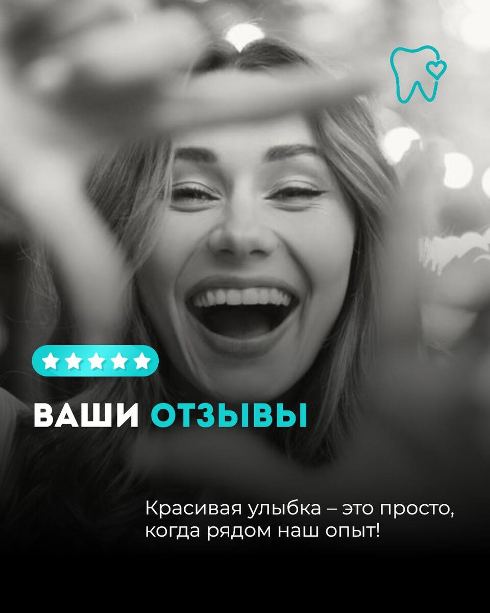 🤗От всей души благодарим вас за ваши теплые слова и искренние отзывы! Вы — наша главная вдохновляющая сила ⠀ Смотрите карточки, чтобы увидеть некоторые из ваших замечательных отзывов! 📸✨ Мы гордимся тем, что можем придавать вашим улыбкам красоту и здоровье! ⠀ 👑 Если вы хотите поделиться своим мнением, ищите нас на Яндекс Картах, 2GIS и на ПроДокторов по запросу «Студия улыбки». Каждое ваше слово имеет для нас неоценимое значение! 🙏 ⠀ С уважением и заботой, ваша «Студия улыбки»!