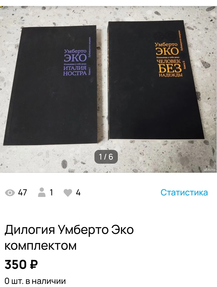 Всем привет! Октябрь продолжает радовать на Авито. Лот #1. Умберто Эко дилогия +321 р. Думала что-то интересное, когда брала бесплатно, но даже не стала начинать, поэтому выставила на Авито. Заказали через пару дней. Авито очень популярный, но другими произведениями. Книги скорочтение и скорописание + Лот #2. Две новогодние тарелки +268 р. чистыми. Покупала в В1 после нового года по 50 р. Продала за несколько часов. Возможно, надо было дороже выкладывать, но не факт что дороже быстро продала бы. Лот #3. Коробка от телевизора +273 р. Купили в конце лета телевизор для студии за почти 10 тысяч с 5000 баллов от продавца за покупку. Баллы вернули. А коробку я решила выставить на Авито. Телевизор какой-то неизвестной нам фирмы, но просмотры были хорошие и кто-то даже хотел да ним приехать, но все не складывалось. И вот заказали. Единственное, что покупательница забрала в последний день и я ей писала за три дня и утром в подесдний, тк очень не хотела, чтобы коробка приехала ко мне обрат