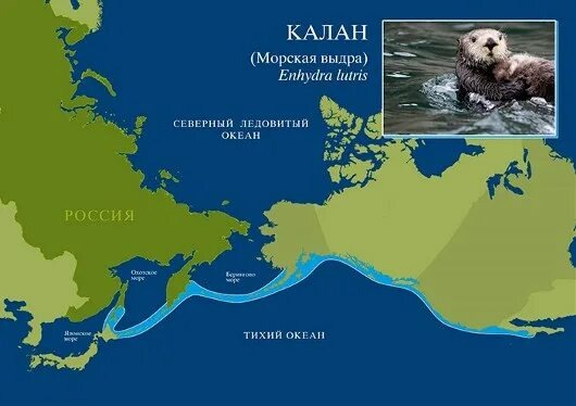 В прошлой части нашей викторины мы загадали необычного обитателя морей России. Этот зверёк не живёт на суше, не роет норы и не строит гнёзд, а проводит почти всю жизнь в воде. Многие слышали о речной выдре, а наш загаданный зверёк её морской родственник. Правильный ответ — калан, или морская выдра. Давайте узнаем больше об этом редком и удивительном животном, которое играет важную роль в жизни прибрежных морей России. Калан — морское млекопитающее из семейства куньих. Он обитает вдоль побережья Камчатки, Курильских и Командорских островов, а также у берегов Северной Америки. В России калан встречается только на Дальнем Востоке и считается редким видом, занесённым в Красную книгу. В отличие от речной выдры, калан проводит практически всю жизнь в воде. Он может спать, отдыхать и даже кормить детёнышей, не выходя на сушу. Когда морская выдра спит, она оборачивает своё тело стеблями морских водорослей — чтобы её не унесло течением. Если рядом другие каланы, они образуют «плотики» — плавающ