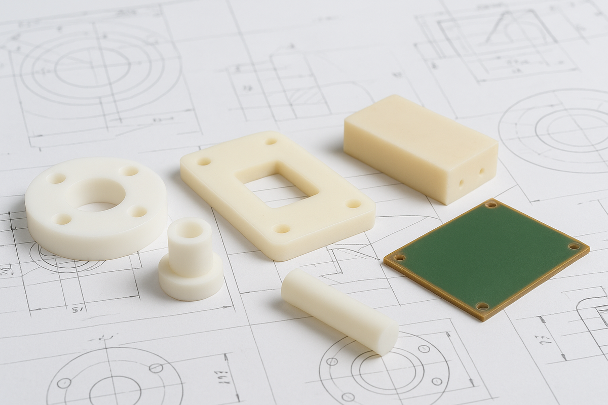 Примеры применения включают: подшипники и втулки из капролона, которые работают без смазки и значительно увеличивают ресурс оборудования; направляющие и ролики из фторопласта, устойчивые к высоким температурам и химическим воздействиям; панели, изоляционные детали и прокладки из стеклотекстолита, обеспечивающие надёжную работу электрооборудования и приборов.