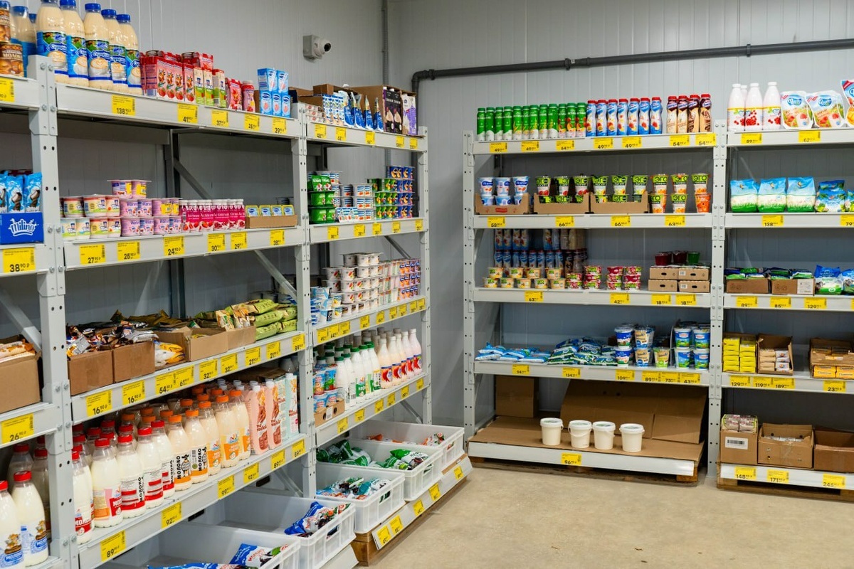 Магазин работает по принципу продсклада: товары расположены в торговом зале на паллетах и стеллажах в заводских упаковках, что позволяет использовать всю площадь торговой точки, не переплачивая за выкладку и дополнительные помещения. Компания сотрудничает с местными и федеральными производителями напрямую, не тратя время и деньги на посредников. Торговая сеть ПОБЕДА рационально подходит к собственным тратам, чтобы обеспечить низкие цены для покупателей.