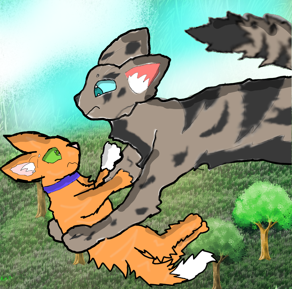 Коты воители битва Огонька и Долгохвоста арт для МАПА