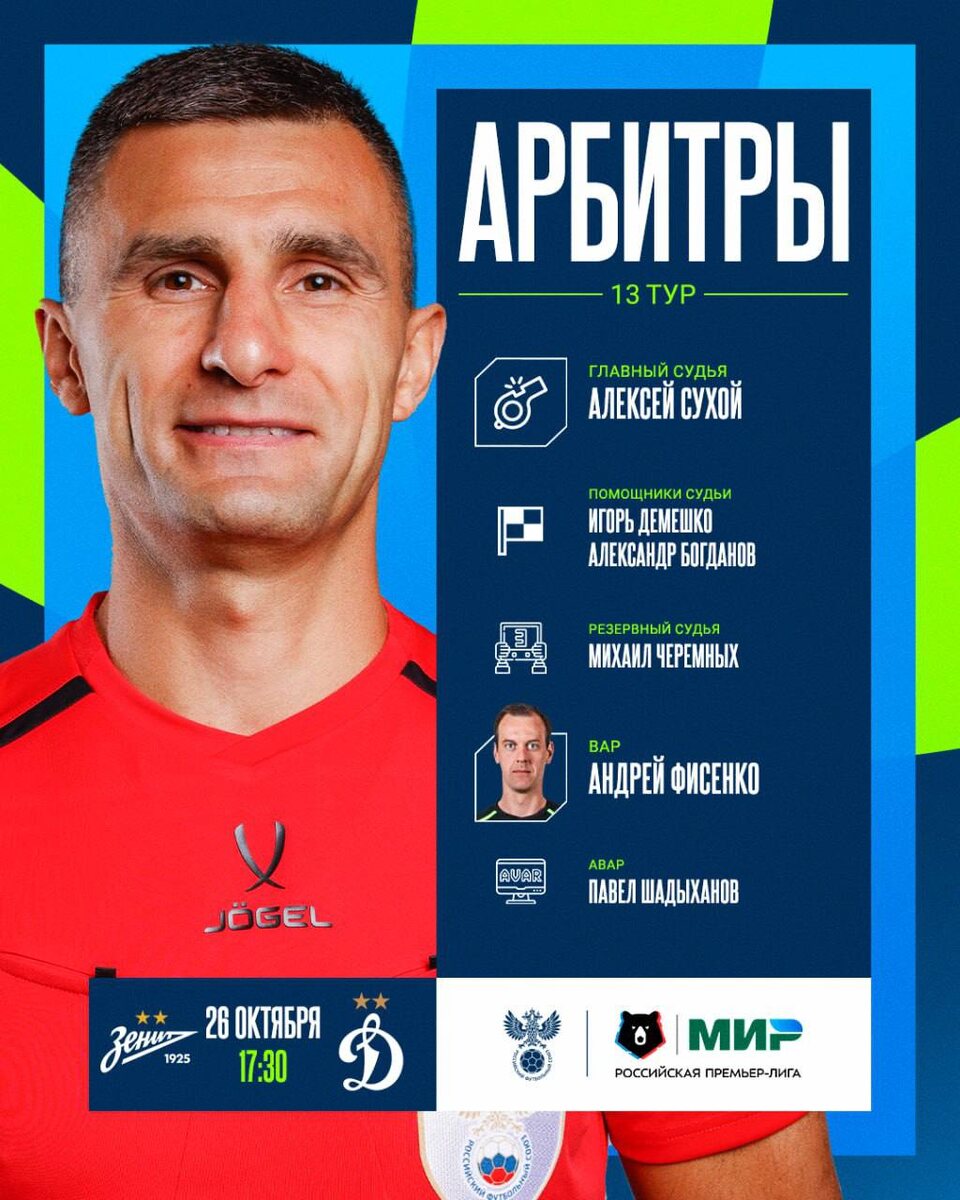 Алексей Сухой назначен главным арбитром матча 13 тура Мир РПЛ #зенитДинамо Судья на VAR — Андрей Фисенко. Встречу покажут на бесплатном канале Матч ТВ вместо Эль-Классико. Комментаторы – питерские Крестинин и Петровский. Игра начнется в 17:30. Хотите забавный факт: стадион, на месте которого сейчас стоит «Газпром Арена» – назывался Крестовский. Про фамилию Петровский, думаю, можно без комментариев) ⚽️ Подписывайтесь на БуДсу