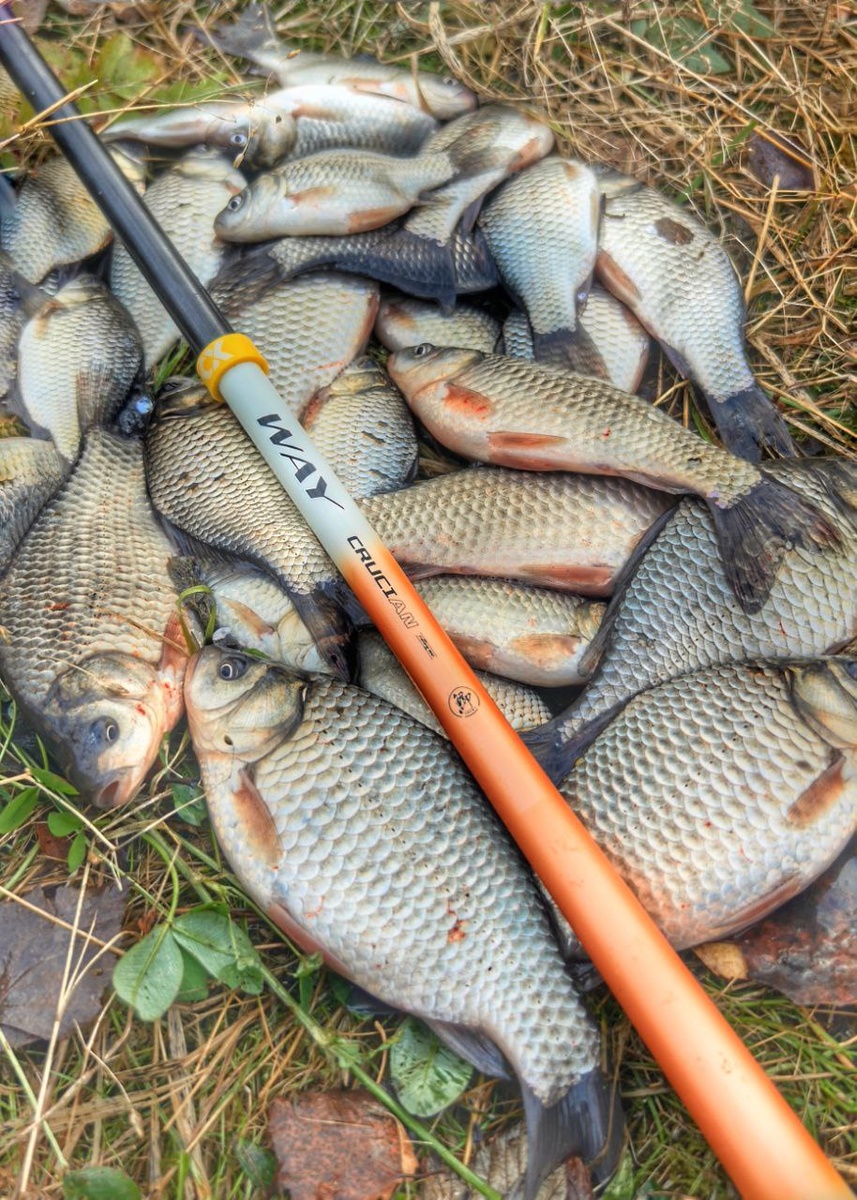 Привет, друзья! По ночам уже минуса иногда, но днем еще градусов до 8-10 воздух прогревается. Карасик почти перестал бегать и стоит как вкопанный. Мелкота еще как то проявляется, а вот крупного сдвинуть с места ой как не просто. Приходишь утром на место, начинаешь тесто замешивать на воде из пруда... А оно замешиваться нормально не хочет. Вроде влил сколько надо по ощущениям и вроде оно нормальное вышло. А минут через 15 как каменное - явно мало воды. Долил еще (что нежелательно, разумеется). И вроде снова мягонькое, но еще время проходит и снова тесто для пельменей. Стал возить с собой маленькую бутылочку с теплой водой - на тепленькой замес прям как надо с первого раза. Пришли на карьерчик. Разложились. Поставил две кореи на 7.2м и на 6.3. Но буквально минут через 15 убрал длинную - мелкота как из пулемета. Достал классику на удочке 5.4. И почти сразу убрал корею 6.3м. И оставил одну удилку. Клев как из пулемета. Догрузил поплавочек и стал ловить на протяг. Поклевки буквально еще на