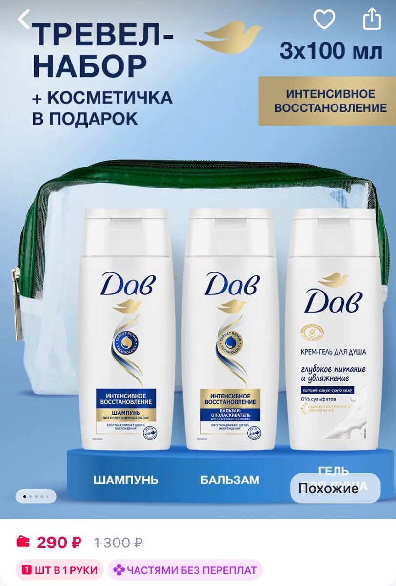 Дав Дорожный набор шампунь и бальзам, гель для душа в косметичке https://www.wildberries.ru/catalog/425142681/detail.aspx?size=606135613 Актуально на момент публикации Подписаться на канал: https://dzen.ru/id/65f30992106fab2943124639 #покупки #отзывы #экономия #скидки #распродажа #промокоды
