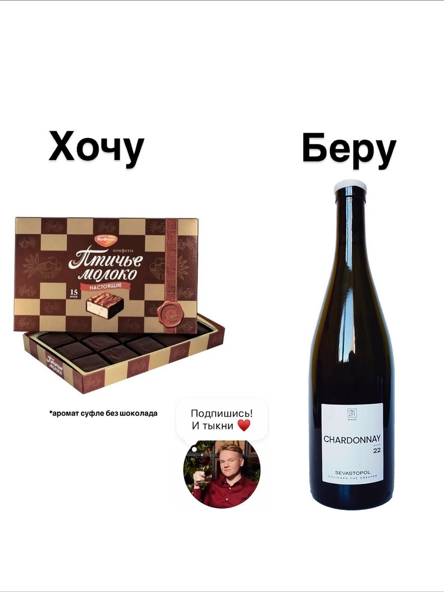 1️⃣ STN Chardonnay — обожаю! Крутой, самобытный и очень вкусный крымский проект молодых ребят. Купить можно в каких-нибудь модных винотеках примерно за 2–3к. Грустно, но вкусно, как говорится. 2️⃣ Viña Lastra Rosado — если вы скучаете по детству у бабушки в деревне, которая с утра нарвала вам ягодки с грядки, залила молоком и добавила чуть мякиша, то данное розе из КБ за ~700 рублей — для вас! 3️⃣ Alta Mora Etna Bianco — вино, которое реально пахнет порохом, жжёными спичками, воском и белыми косточковыми фруктами. Всё потому, что виноград вырос на вулканических почвах рядом с вулканом Этна на Сицилии. Искать в Табрисе, Метро и модных винотеках. По цене около 4к… 4️⃣ Chocoholic Pinotage — винное какао какое-то. Пинотаж — это тот самый сорт, который часто пахнет кофе, шоколадом и чем-то ванильным. Почему? Скоро выложу ролик! Не пропустите! Кстати, это вино видел в Перекрёстке за 1000. 5️⃣ Two Hands The Boy Riesling — ПРОСТИТЕ МЕНЯ! Ну вот такой я вызывающий молодой человек, который