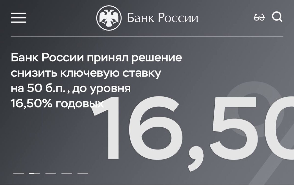 ⚡️Сегодня ЦБ снизил ставку на 0,5 п.п - с 17 до 16,5%