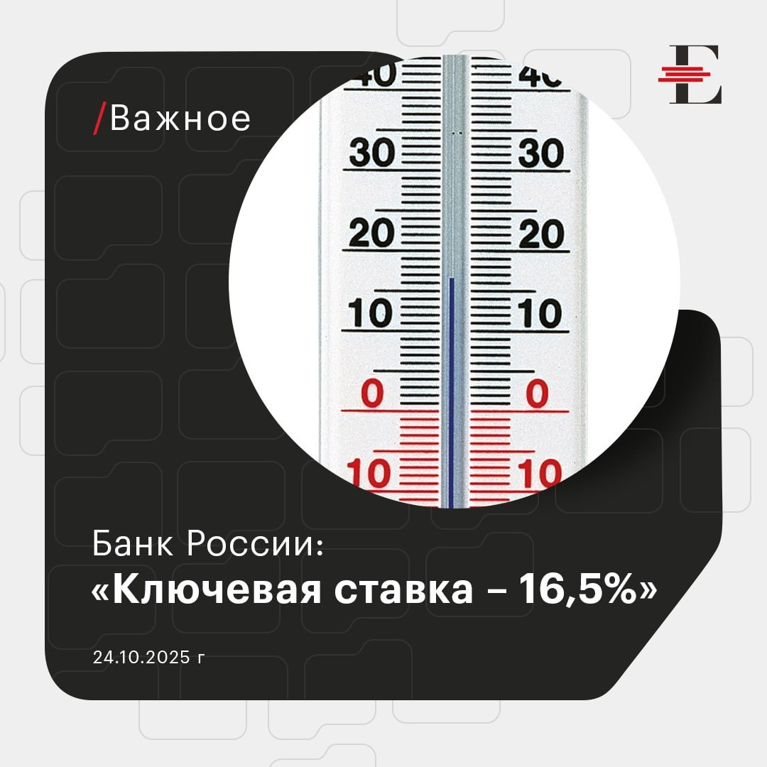 ⚡️ СТАВКА - 16,5%. Совет директоров Банка России 24 октября 2025 года принял решение снизить ключевую ставку на 50 б.п., до 16,50% годовых. 🏦 Совет директоров Банка России 24 октября 2025 года принял решение снизить ключевую ставку на 50 б.п., до 16,50% годовых. Устойчивые показатели текущего роста цен значимо не изменились и остаются выше 4% в пересчете на год. Экономика продолжает возвращаться к траектории сбалансированного роста. В последние месяцы активизировался рост кредитования. Высокими остаются инфляционные ожидания. Банк России будет поддерживать такую жесткость денежно-кредитных условий, которая необходима для возвращения инфляции к цели. #ключевая_ставка