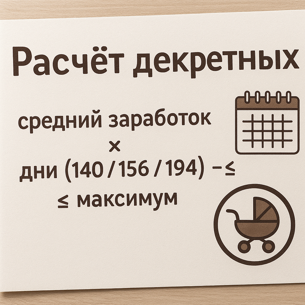 — Пособие = 100% среднего заработка за расчётный период, но не выше предельной базы страховых взносов; умножается на длительность отпуска (обычно 140 дней, при осложнениях 156, при много