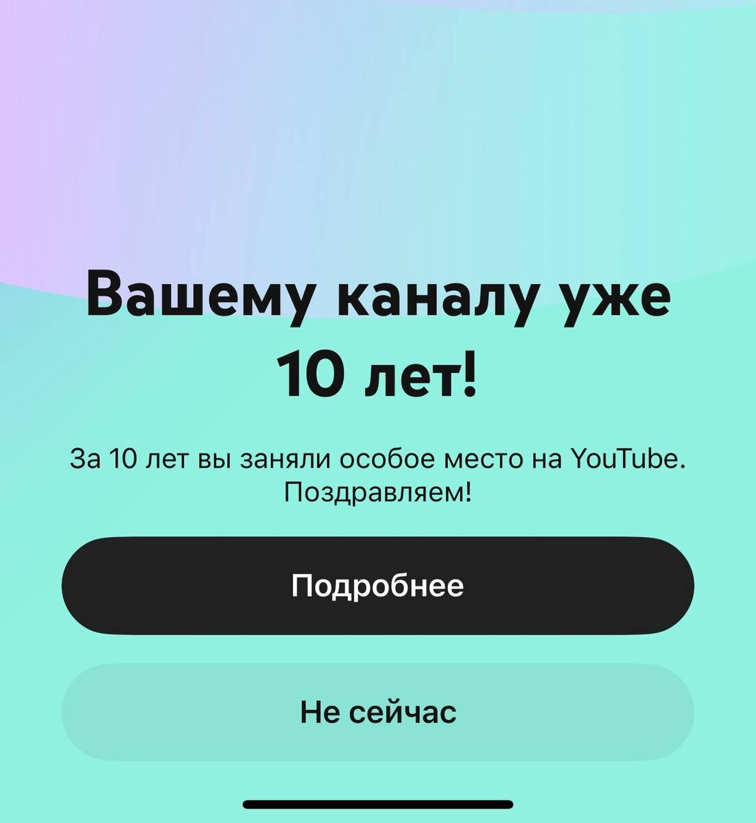 Моему каналу konoden live уже 10 лет. Возможно, кто-то из вас даже помнит мои ролики про МГУ) Челлендж, который я провожу сейчас, очень в кассу. И подобные напоминания от YouTube дополнительно воодушевляют!