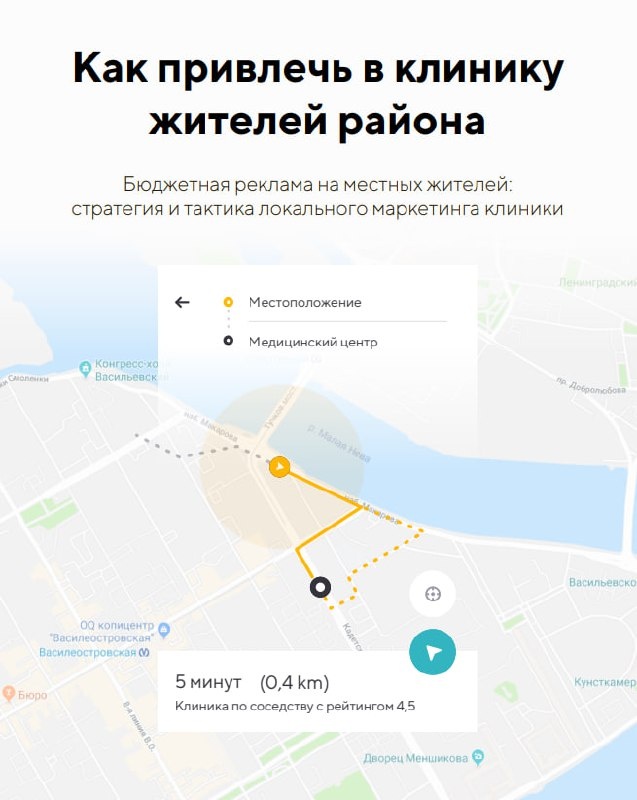 Недавно был на вебинаре от сервиса НаПоправку. Тема: «Как привлечь пациентов из своего района». Вроде бы простая идея, но то, как ее разобрали — must have для всех, кто работает в медицинском маркетинге. Если коротко, речь шла о локальном продвижении клиник — как привлечь пациентов в радиусе буквально нескольких улиц. Делюсь основными инсайтами: Играйте на своей территории. Локальный маркетинг сегодня решает. Пациенты ищут клиники не по всему городу, а рядом с домом или работой. Даже небольшая клиника может конкурировать с сетевыми, если ее карточка и контент правильно настроены под локальные запросы. Сарафанка сильнее рекламы. Если пациент доволен, он не только вернется, но и приведет семью, коллег, соседей. Поэтому акцент не на скидках, а на сервисе и эмоциях. Геотаргетинг решает. Запросы вроде «стоматолог у метро Савеловская» дают конверсию в 3–4 раза выше, чем просто «стоматолог Москва». Чем точнее локация, тем меньше бюджет и больше записей. Возвращайте тех, кто уже был. СМС