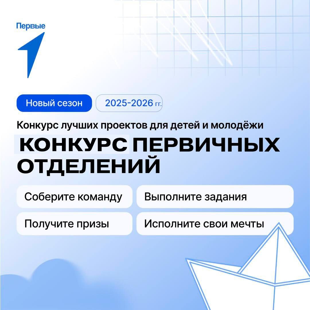 Стартовал третий сезон Конкурса первичных отделений Движения Первых ✨ Конкурс первичных отделений - это возможность получить прямую ресурсную поддержку от 200 тысяч до 1 миллиона рублей для развития значимой деятельности Первых в колледжах, школах, вузах, в учреждениях культуры, спорта, молодёжной политики и на предприятиях. 🔥В предыдущем сезоне Республика Башкортостан вошла в ТОП - 15 в рейтинге среди всех регионов страны. Победителями стали 48 организаций на сумму 10 800 000 рублей. ✅ Чтобы принять участие необходимо перейти по ссылке https://clck.ru/3PuPWT. Желаем успехов всем участникам! #ДвижениеПервыхРБhtu
