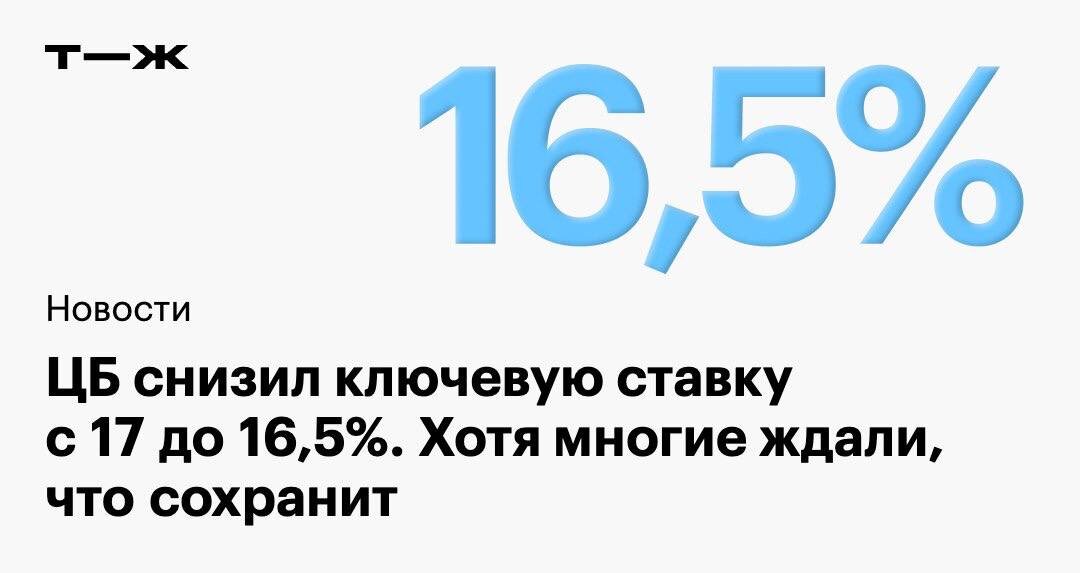 Почему ЦБ снова снизил ставку, когда рынок допускал паузу 24 октября Банк России принял решение снизить ключевую ставку на 0,5 процентного пункта, до 16,5% годовых. Это четвертое подряд снижение ставки. С июня она опустилась уже на 3,5 пункта. Для рынка решение не стало большим сюрпризом. Накануне заседания многие аналитики допускали снижение ставки. И все же большинство предполагали, что ее сохранят с учетом выросших макроэкономических рисков. Разбираемся, почему ЦБ действует мягко на фоне роста инфляции и какими могут быть его шаги дальше: https://t-j.ru/inv-tg/stavka-october-2025/