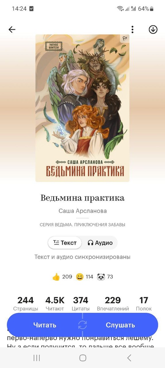 Вчера закончила читать прелестную добрую сказку – язык не повернётся назвать это фэнтези как-то иначе) Лешие, русалки, Лихо, кикиморы, избушка со своим нравом и прочие существа русских сказок попадают в любопытные истории вместе с главной героиней – ведьмой. От истории очень тепло и приятно, а из-за маленького объёма книги можно спокойно прочитать 1 часть за несколько часов. Рекомендую сразу обе части, чтобы была цельная картинка сюжета. Единственное, что немного подпортило мне впечатление – логика поведения главной героини, точнее, её отсутствие во многих случаях. Но если принять это как данность характера гг, можно закрыть глаза и просто следить за историей) Когда хочется лёгкого слегка юморного чтения без драм, трагедий, но с акцентом на событийность – вполне хороший вариант) 🔎Где найти: Я.Книги Литрес #читаю_запоем #чз_фэнтези #чз_славянское_фэнтези