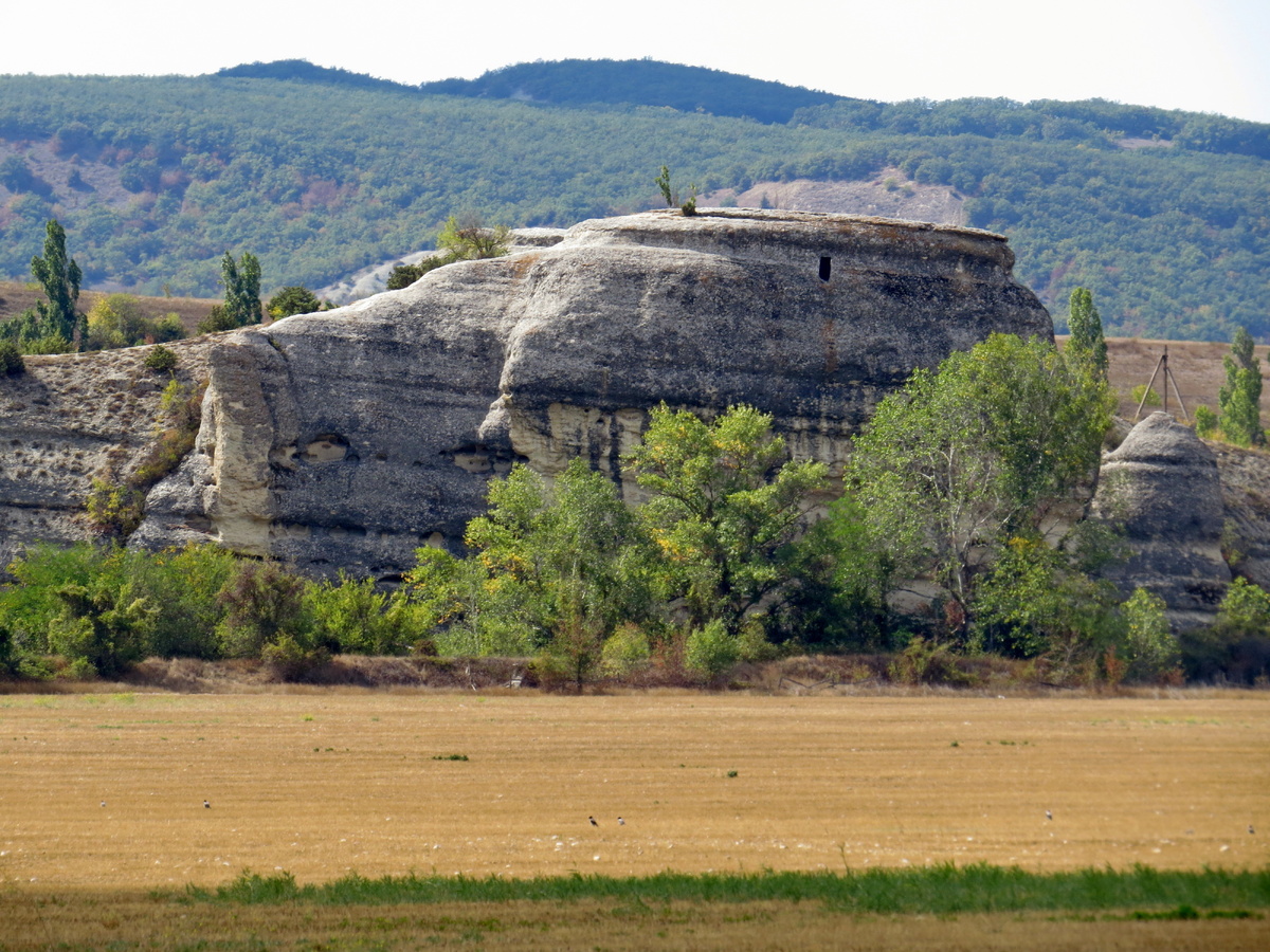 Выполнив свои дела в Севастополе, мы поехали домой. Но, раз завтрак был в таком красивом месте, как озеро Мангуп, обед тоже должен быть тоже запоминающимся! У озера уже останавливаться не захотелось, да и ветер уже покрыл его поверхность рябью. Едем дальше. Пришла мысль остановиться под скальной грядой Крокодил (Арман-Кая), рядом с селом Танковое. Почему бы не посмотреть на него с другой стороны. Объехав огромное поле, нашли дорогу к скале, но после дождей, затопленное поле попыталось нас поглотить. Во время выехали. Значит, идем ногами! Долина Бельбек манит своими воротами! Манит дальними высокими горами. А мы там были уже! Целый один раз! Куда ни посмотришь, виды потрясающие. Скалу Крокодил видно хорошо только издали. Чем ближе мы подходили, тем больше ее рельефные скальные статуи прятались за деревья. Значит, посидим у реки. Где пробрались сквозь деревья, там и устроились. Еще неделю назад река Бельбек была совсем сухой, а сейчас в ней уже появилась вода. Да мало, по общепринят