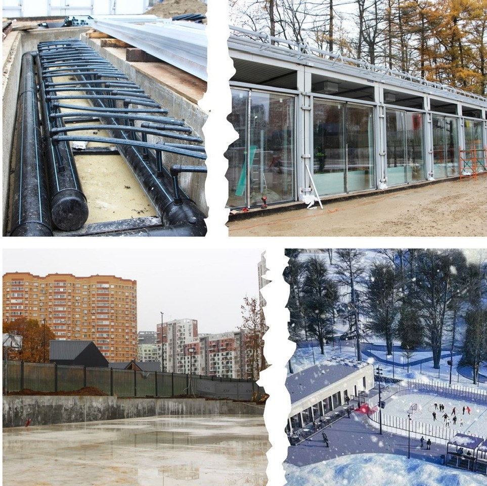 ⛸ Строители установили павильон всесезонной площадки у Конного пруда В нем будут раздевалки, помещения для хранения инвентаря и техники, кафе и туалеты. Основание для спортивной зоны также готово, строители установили навес для трибун и подвели коммуникации для монтажа опор освещения. В павильоне проходят работы по остеклению и внутренней отделке. «На Конном пруду появится универсальная локация для зимних и летних видов спорта. Площадку оснастят холодильным оборудованием, которое позволит заливать каток при температуре около нуля градусов, а летом жители смогут здесь играть в футбол, волейбол и баскетбол», — поделился глава муниципального округа Коммунарка Василий Долженков (https://vk.com/id631520229). На территории, кроме освещения и прожекторов, установят динамики для трансляции музыки и проведут благоустройство. Вокруг спортивной зоны смонтируют хоккейные борта с подсветкой. #Коммунарка