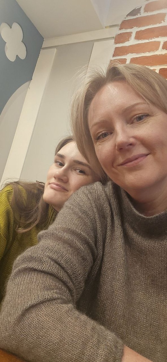 Я не купила пряжи!!!! И вообще не заходила ни в один магазин с ней, и не планирую(пока, во всяком случае) хотя я в Питере была, сейчас в Великом Новгороде, а потом в Москву. А запасов пряжи у меня...как у любой вязальщицы😂 Нет, я не заболела и интерес не пропал😂 Просто я поняла, что на себя связать просто не хватает времени. Последнее изделие для себя любимой был карди в одноименном мастер-классе.И то... потому, что клиентка на него перенесла свой заказ на более позднее время. "И это, друзья мои, НЕ НОРМАЛЬНО!!!! Так можно просто превратить любимое дело в обычный способ зароботка со всеми вытекающими..." подумала я. А тут и моя коллега (Надя, привет!) мне сделала вливание😂 очень правильное! "Себя надо точно так же ставить в график вязания!!!' А если очень хочется, то можно и на раньше перенести. По блату😂😂😂" И знаете... это прямо в точку! А вы как думаете? (На фото я с дочерью😘)
