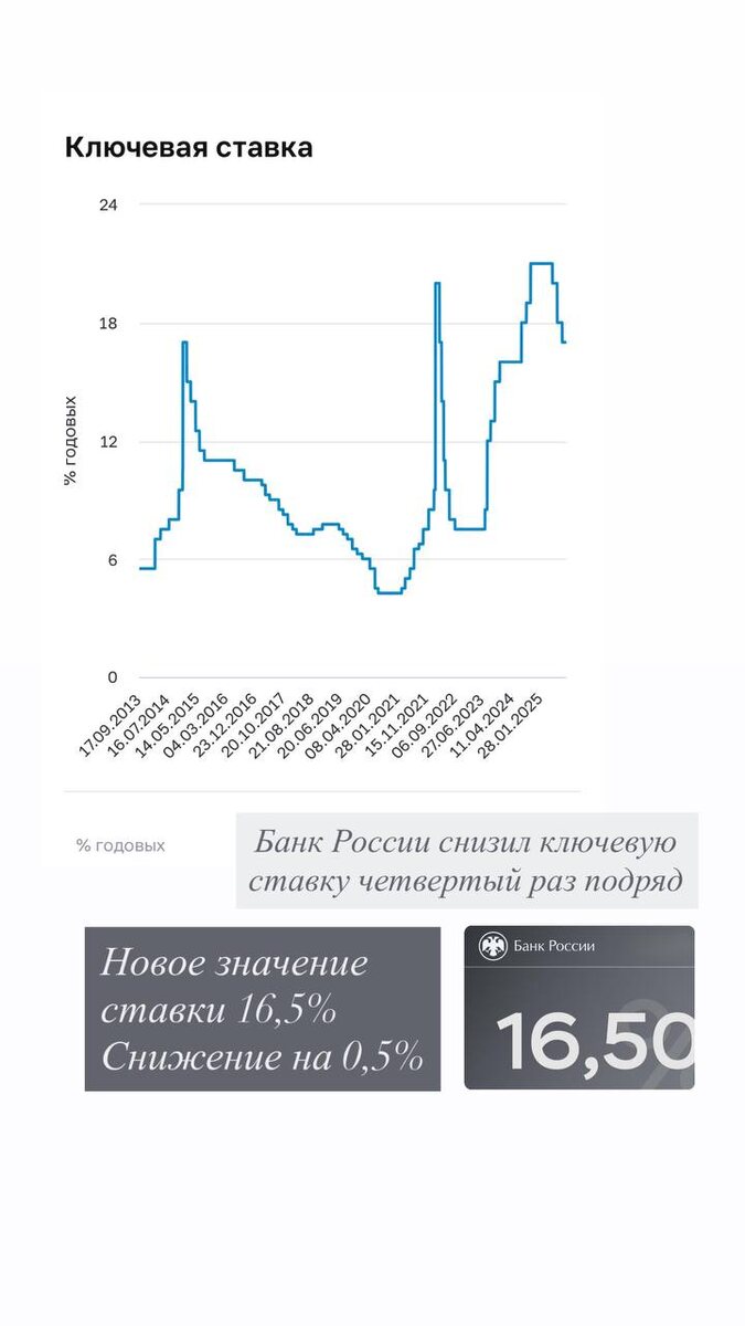 ⚡️Банк России снизил четвертый раз подряд ключевую ставку