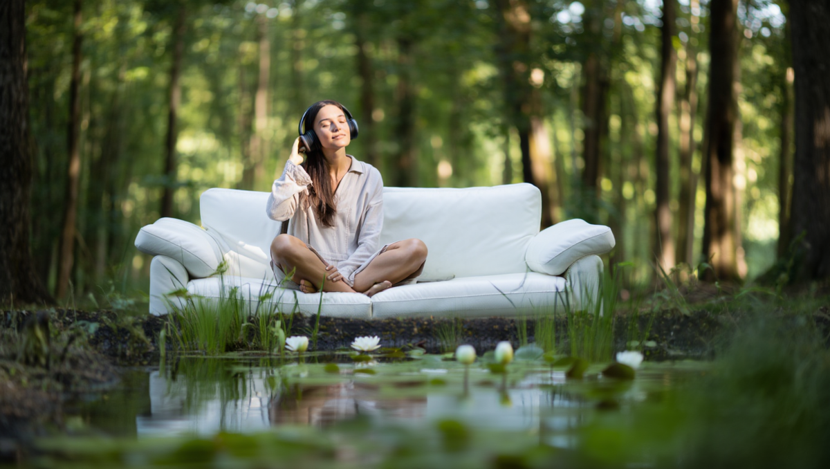 На фотографии девушка просто сидит и слушает. Но в этом простом действии — суть потока. Она не бежит от мира, не ищет ответов, не пытается ничего доказать. Она просто есть.