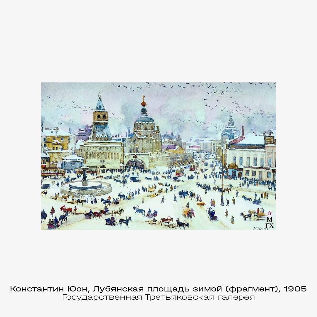 24 октября родился Константин Юон — живописец, график и сценограф. Одна из любимых тем художника — это Москва. Картины Юона сохранили для нас архитектурный облик и быт столицы начала ХХ века. Например, Москворецкий мост был одной из главных торговых артерий, потому что вёл к центру города, а на Лубянской площади мы видим всего один автомобиль — пока ещё редкий гость на московских улицах. К Москве я обращался много раз, вплоть до последних дней, всегда с новыми целями и чувствами, всегда находя в ней новое содержание и новые черты. <…> Москва сыграла в моей художественной жизни большую роль. В Москве началась моя живопись; Москва вскормила во мне основные интересы и увлечения. К этому городу я постоянно возвращался, — пишет Юон в своём очерке «Москва в моём творчестве».