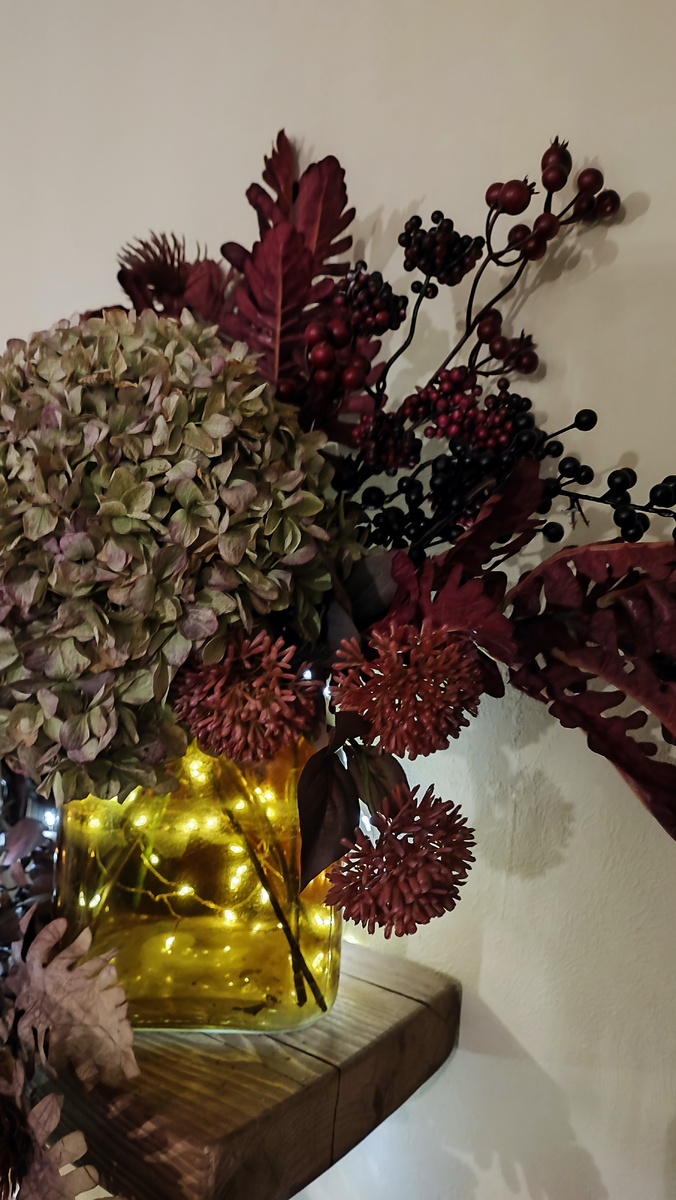 Знаю что не все выбирают искусственные веточки для интерьера ,но мне нравится сочетать их с сухоцветами или даже с живыми цветами. Например в осенней коллекции Фикс прайс 2025 года,есть веточки с ягодками в трёх расцветках, если не ошибаюсь 174р. На мой взгляд, наиболее удачная темно бордовая. Она очень красиво сочетается с сухоцветами Гортензии и искусственными ветками , купленными ранее в Фикс прайс . Кроме того,я планирую применять такие веточки и в зимнем декоре. Посмотрите как эти ягодки сочетаются с зелёными хвойными ветками Уверена многие из тех,кто на меня давно подписан знают, что цвет в моём интерьере появляется не только по сезону, но и по настроению. Были времена, когда фактура камня буквально заполонила все мои переделки . Я красила все вазы , разные супницы и так далее... Всё было с фактурой камня. Мне до сих пор нравится этот эффект в декоре ,но сейчас мне хочется глубоких и приглушённых оттенков ,таких как винный, тёмно-зеленый, кофейный и тому подобных акцентов на фо