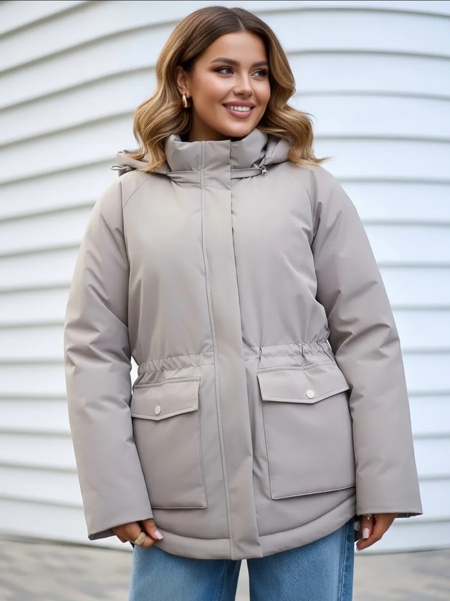 Эта куртка идеально заполняет промежуток между лёгкими ветровками и тёплыми пуховиками! Укороченный оверсайз крой не утяжеляет нижнюю часть тела, что важно для женщин с пышными бёдрами. Водоотталкивающая ткань защищает от внезапного дождя, а подкладка сохраняет тепло без эффекта "термоса".