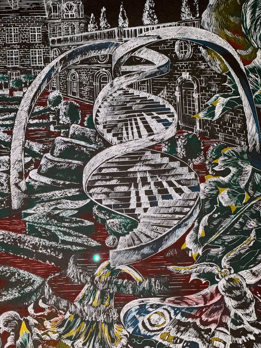 … на переднем плане — две удивительные птички и огромная бабочка 🦋