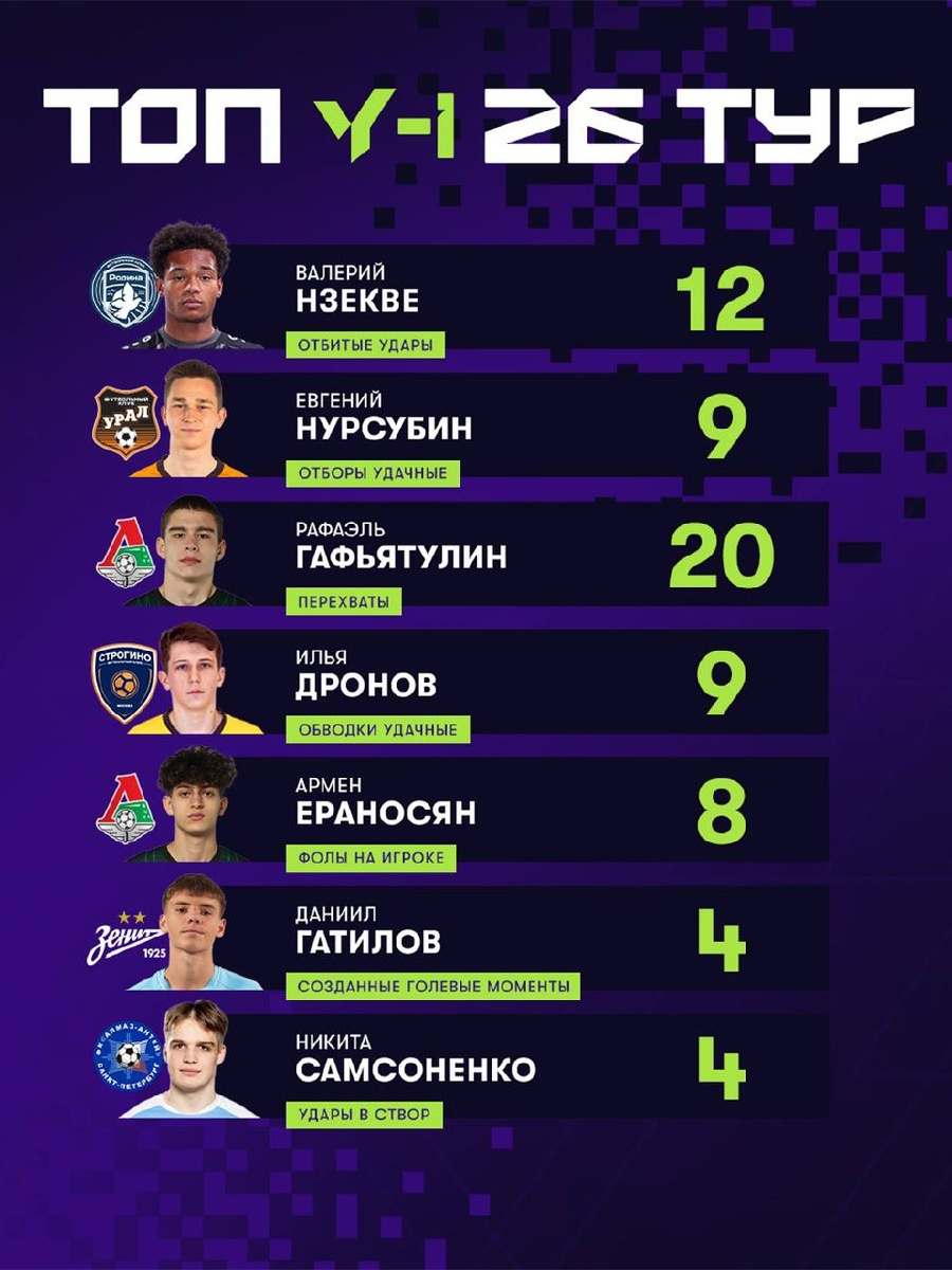 Рафаэль Гафьятулин – лучший по перехватам, Барсуков – по удачным обводкам, Васьков – по ударам в створ 👊