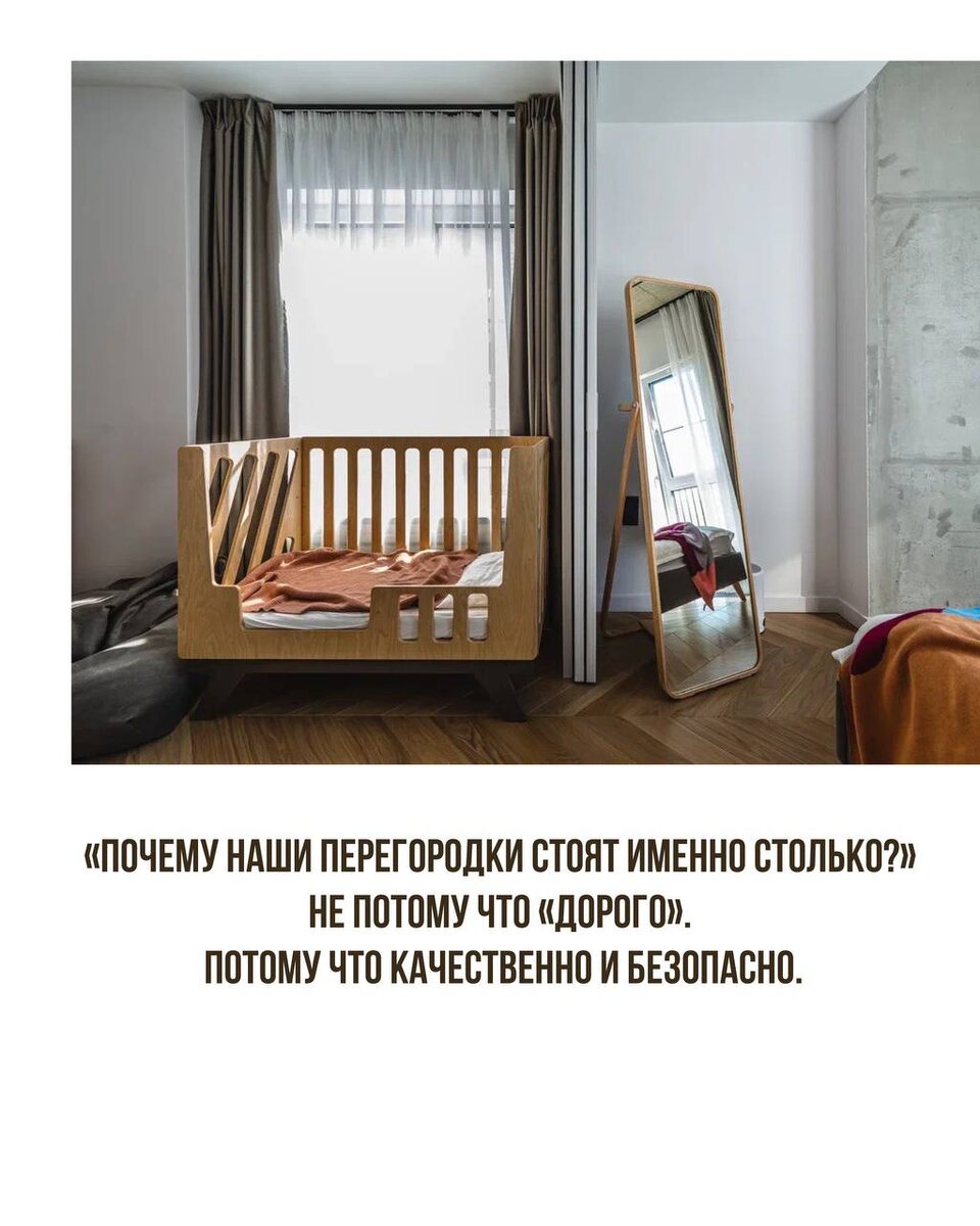 «Почему наши перегородки стоят именно столько?» Не потому что «дорого». Потому что качественно и безопасно. 1⃣Безопасность — на первом месте. Закалённое стекло в 7 раз прочнее обычного. Его невозможно разбить случайно — только если очень постараться. И даже тогда оно рассыпается в безопасную крошку без острых граней. Мы используем стекло, закалённое по ГОСТ 2014. Оно занимает около 50% стоимости перегородки — и это осознанный выбор. Потому что безопасность вашей семьи не должна быть “дешёвой опцией”. 2⃣Экологичные материалы. Каркасы Deli не выделяют токсинов и не вызывают аллергий. Деревянные модели — из массива сосны и МДФ, покрытые экошпоном или американской эмалью с безопасным составом. Алюминиевые конструкции — только от проверенных производителей из Италии и России. 3⃣Эстетика + надёжность. Мы отвечаем за результат. Если вам не понравится — демонтируем и вернём деньги. Гарантия — 3 года. За всё время работы — менее 0,5% обращений по гарантии. Вы платите не “бешеные деньги”. В