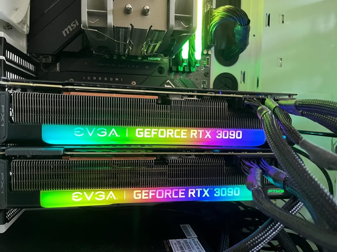 На Reddit пользователь собрал ПК с двумя RTX 3090 для работы с LLM, но карты буквально касаются друг друга. Результат: верхняя карта нагревается до 80°C+ при полной нагрузке.
