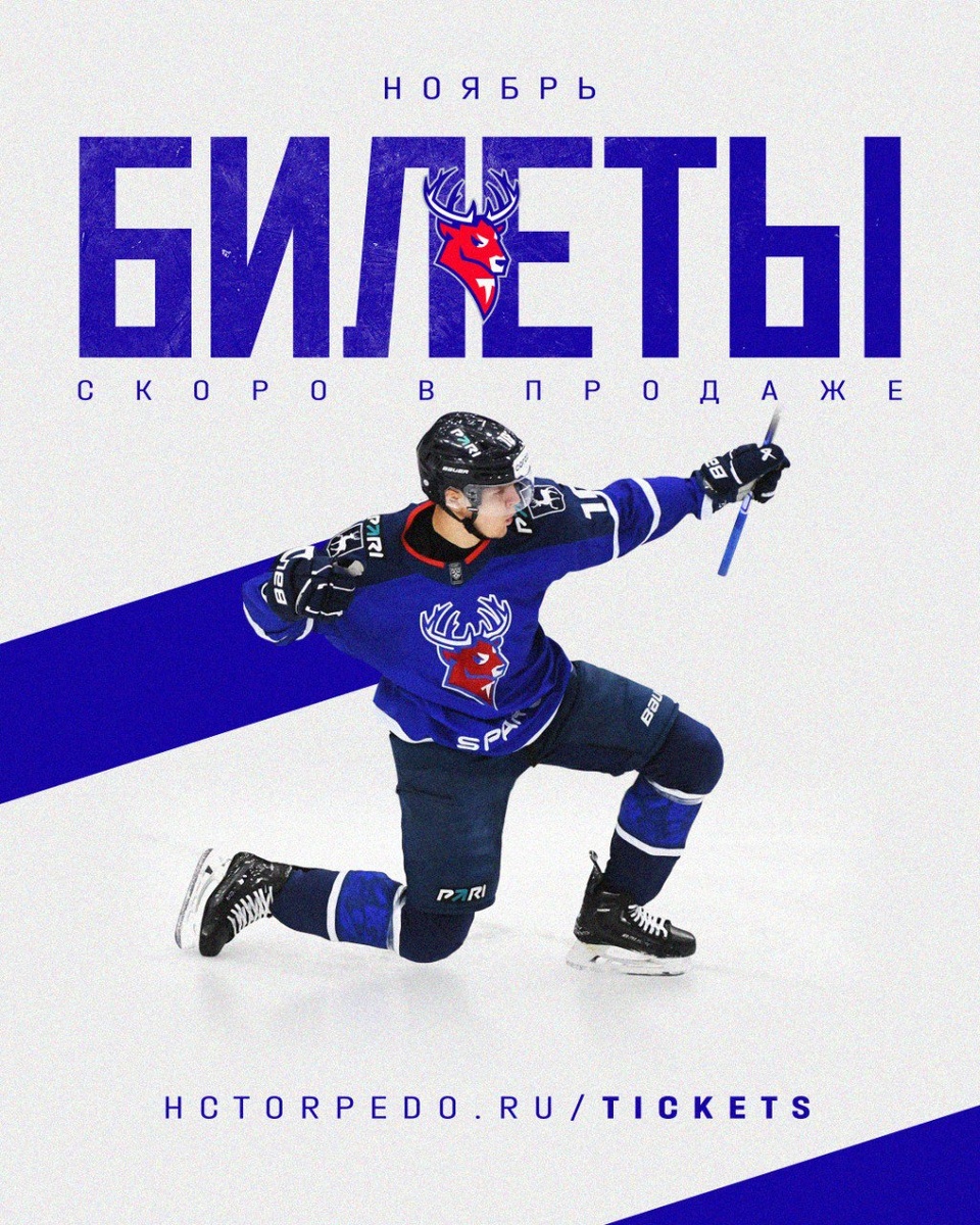 27 октября в 12:00 на сайте хоккейного клуба «Торпедо» и на билетном портале «Яндекс Афиша» стартует продажа билетов на домашние матчи нашей команды в ноябре 🎫 Заключительный осенний месяц подарит нижегородским болельщикам 6 игр на льду «Нагорного»: с «Локомотивом» (10 ноября), ХК «Сочи» (12 ноября), «Авангардом» (16 ноября), «Адмиралом» (18 ноября), «Спартаком» (20 ноября) и минским «Динамо» (28 ноября) 🏒 Обращаем внимание, что только приобретение билетов на официальных ресурсах гарантирует их подлинность. Остерегайтесь мошенников и подделок ⚠️ До скорой встречи на хоккее ❤️