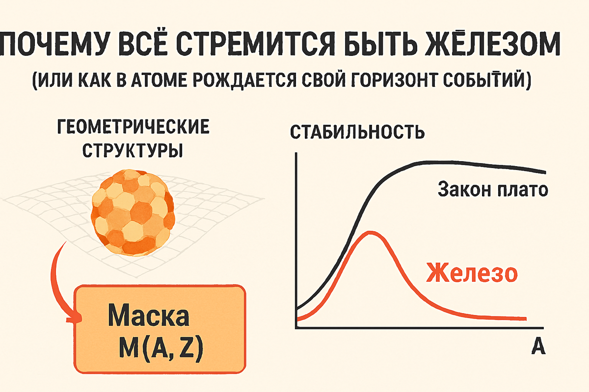 Потому что железо и никель — это не просто самые "прочные" атомы. Это **идеальное геометрическое решение**. Это та конфигурация протонов и нейтронов, которая создаёт минимальное "натяжение" в нашей четырёхмерной ткани реальности.