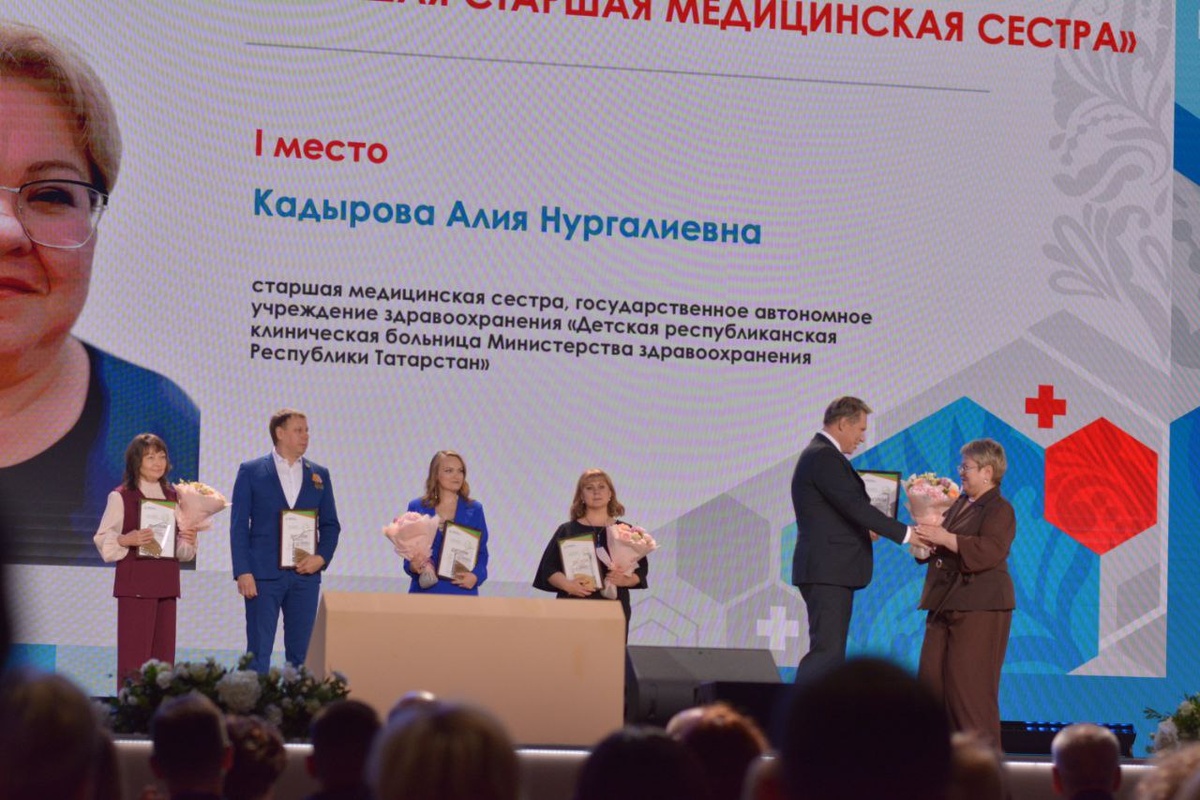 В рамках Национального конгресса «Национальное здравоохранение 2025», проходящего в эти дни в Москве состоялось торжественное награждение лучших врачей и медицинских работников, в котором принял участие министр здравоохранения Российской Федерации Михаил Мурашко. Лучшей старшей медицинской сестрой признана работник Детской республиканской клинической больницы Алия Кадырова. Мы писали о ней. Поздравляем!