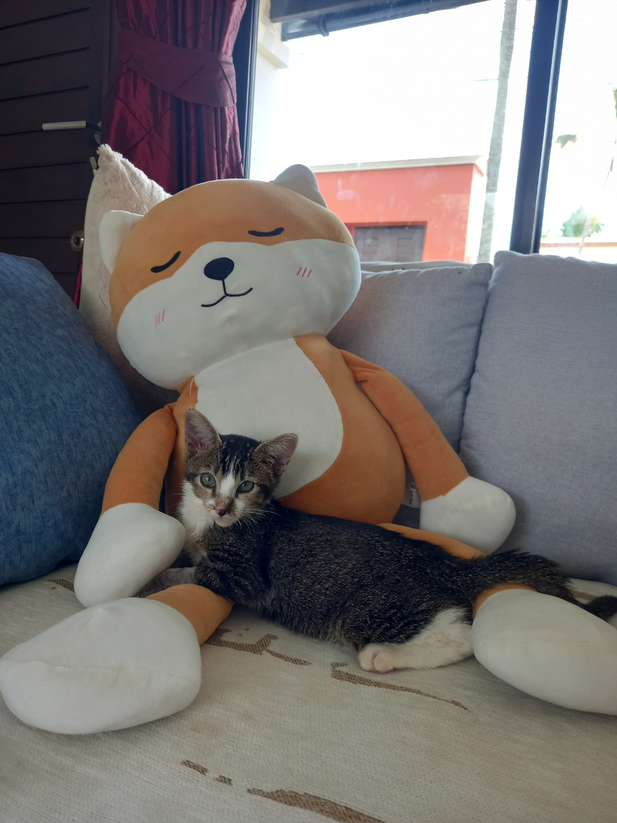 Этот которебёнок несколько дней находился в реанимации под капельницей в кислородном боксе на грани жизни и смерти. 1 октября, утром, я нашла его кричащим в крови, на парковке супермаркета. Тайский парень, стоявший рядом, сказал, что на котенка наехала машина. Я не могла оставить его умирать. Поэтому пришлось забрать обоих - кота в сумку, парня в сопровождение и в ближайшую ветеринарную клинику. Надежды практически не было, и мне дважды за сутки приходили сообщения из клиники, что состояние ухудшается, падает температура, практически нет дыхания и пульса и котенок может уйти на тот свет в любой момент. Но малыш так цеплялся за жизнь, что почти выкарабкался и два дня спустя мне прислали видео, где он поднимается и двигается сам и даже немного поел 💝🙏🙏🙏 Он перенес операцию по восстановлению сломанной челюсти. А 2 декабря еще одна - по удалению имплантов, на которых держится эта крошечная челюсть, чудом собранная хирургами. Я очень надеюсь, что он справится. И вот еще фото этих зам