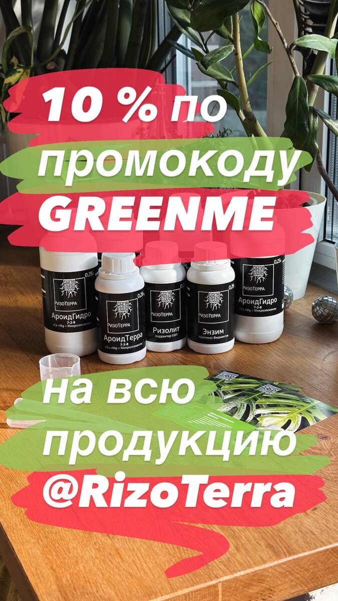 ❤️🔥 СКИДКИ и ПРОМОКОДЫ! ❤️🔥 Приятные новости заказывали?) всем привет 💚 ⚡️У нас появилась новая скидка! И это @RizoTerra, которым мы с вами помогали выбирать название для удобрений! Промокод GREENME (заглавными буквами) скинет 10% на всю продукцию через их бота @RizoTerraBot Что ещё по скидкам? ⤵️ 🧪 Удобрения 15% по промокоду GREENME на удоьрения Raste *действует скидка и на другие товары сайта 💡Свет 10% по промокоду GREENME на сайте minifermer.ru ☕️ Кофе 15% по промокоду GREENME15 на мой любимый TastyCoffee @roastedinizhevsk 🖤 💚 50 % на ГАЙД «Полугидропоника для начинающих» (себе или в подарок) или 💚 20% на мои РАСТЕНИЯ в @greenme_sale за отзыв на «Нетипичный цветовод» или «Беспочвенные мифы» в любом интернет магазине (просто напишите мне об этом). Приятного зеленошопинга)) Пользуйтесь, мои хорошие! 💚 ❗️Если вы хотите предложить скидку для моих подписчиков, пишите скорее! 😁 #скидки #промокоды