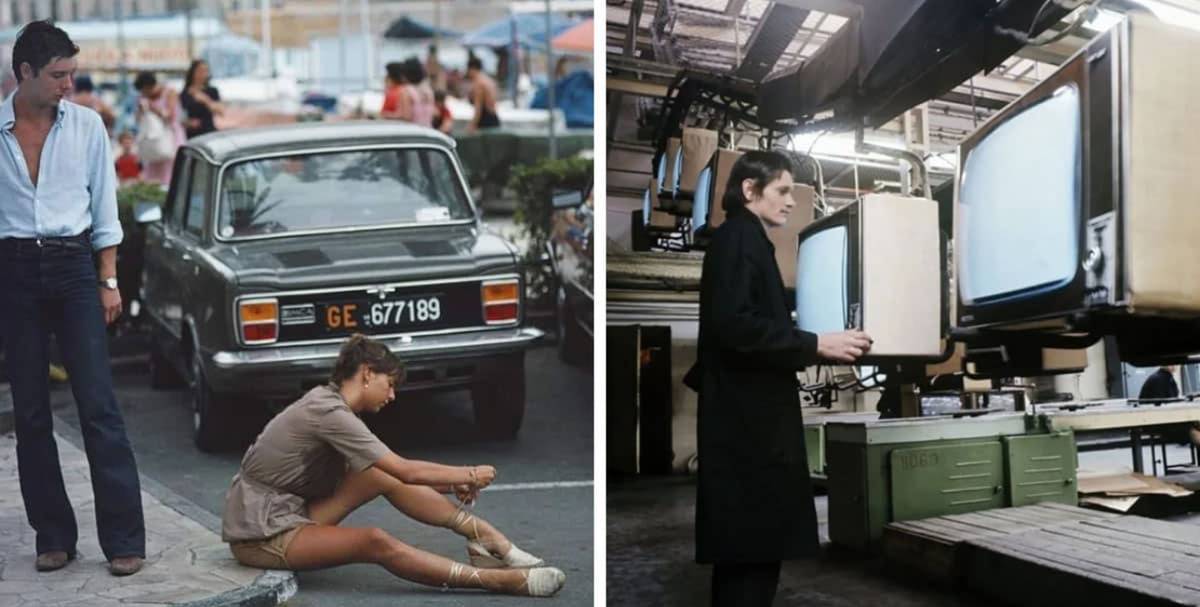 На фото, сделанном в августе 1977-го года в итальянском рыбацком городке Портофино, видим девушку, сидящую на тротуаре и завязывающую сандалии