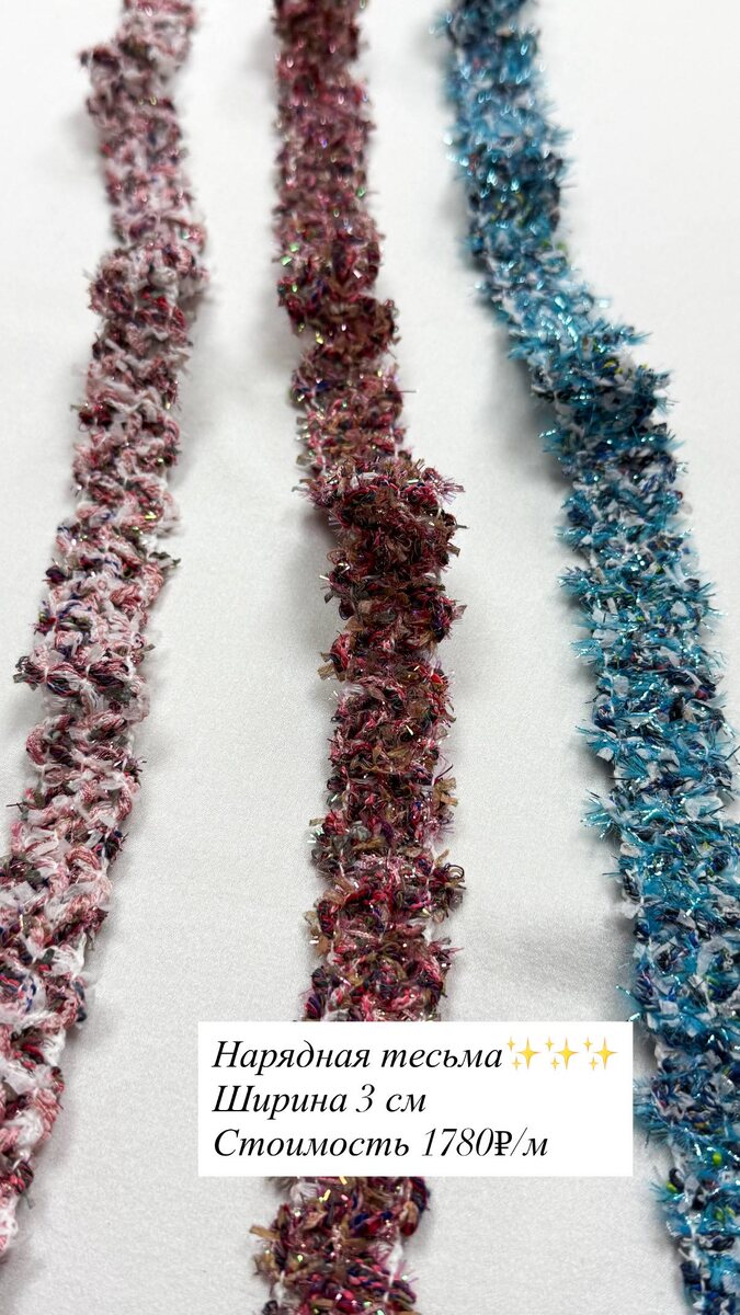 Тесьма в стиле «Шанель» прозрачные нарядные пуговицы и нитки в ассортименте. •Тесьма-1789₽/м (ширина-3см) Производство: Франция. •Пуговицы: 25мм-358₽/шт 15мм-147₽/шт Производство: Италия. •Нитки-340₽/шт (в ассортименте) Производство: Германия. На первый заказ мы дарим Вам скидку 10% Для заказа пишите пожалуйста нам в телеграмм с волшебной фразой «Пришла из Дзен» Ссылка на наш телеграмм канал: Ждём Вас ежедневно, с 10:00 до 20:00 По адресу: г.Москва, ул.Мневники д.6, п.6
