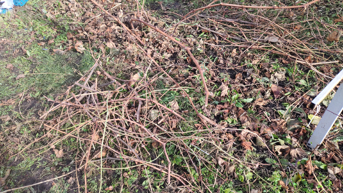 На большинстве кустов лоза вызрела хорошо. Есть что оставить на плодоношение следующего года. Обращу внимание на то, что здоровье виноградника сильно зависит от места расположения. В данном случае нет рядом соседских запущенных виноградников и винограду в этом сезоне хватило трёх профилактических обработок. Все три делал на винограднике я. Это обработка до цветения, после цветения и перед созреванием урожая. Серьезных вспышек заболевания или потери урожая не было. Часть гроздей висит до сих пор, на Северном сладком на арке и на техническом ХЗЧ.